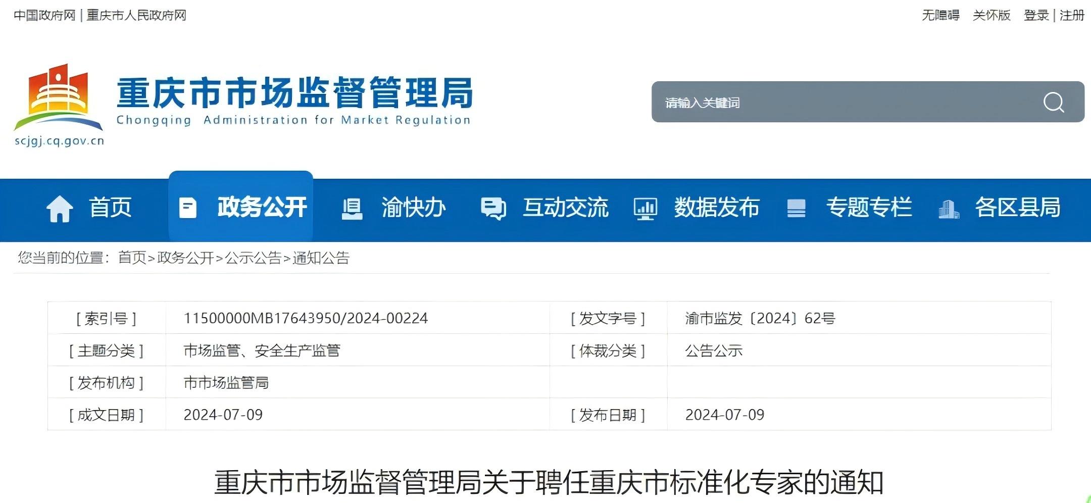 热烈祝贺蒋啸冰秘书长聘任为重庆市标准化专家(商贸服务业),重庆市市场监督管理局关于聘任重庆市标准化专家的通知