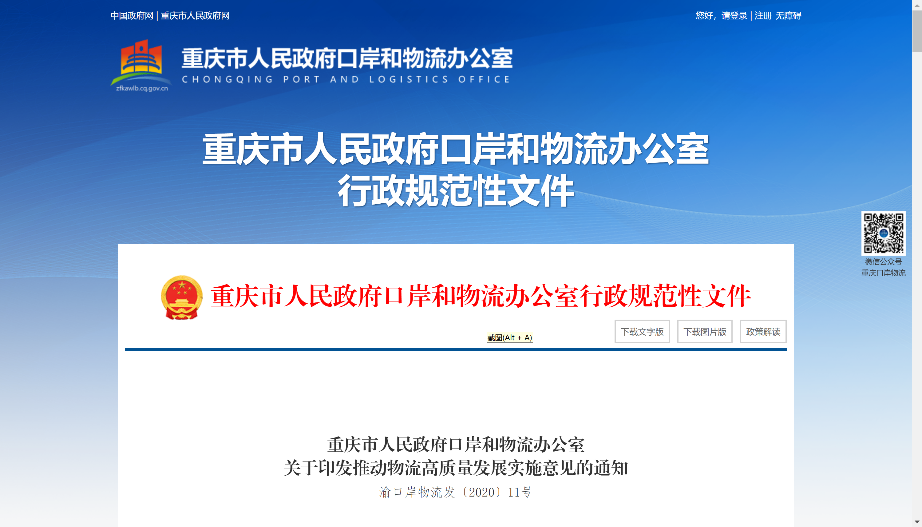 重庆市人民政府口岸和物流办公室关于印发推动物流高质量发展实施意见的通知