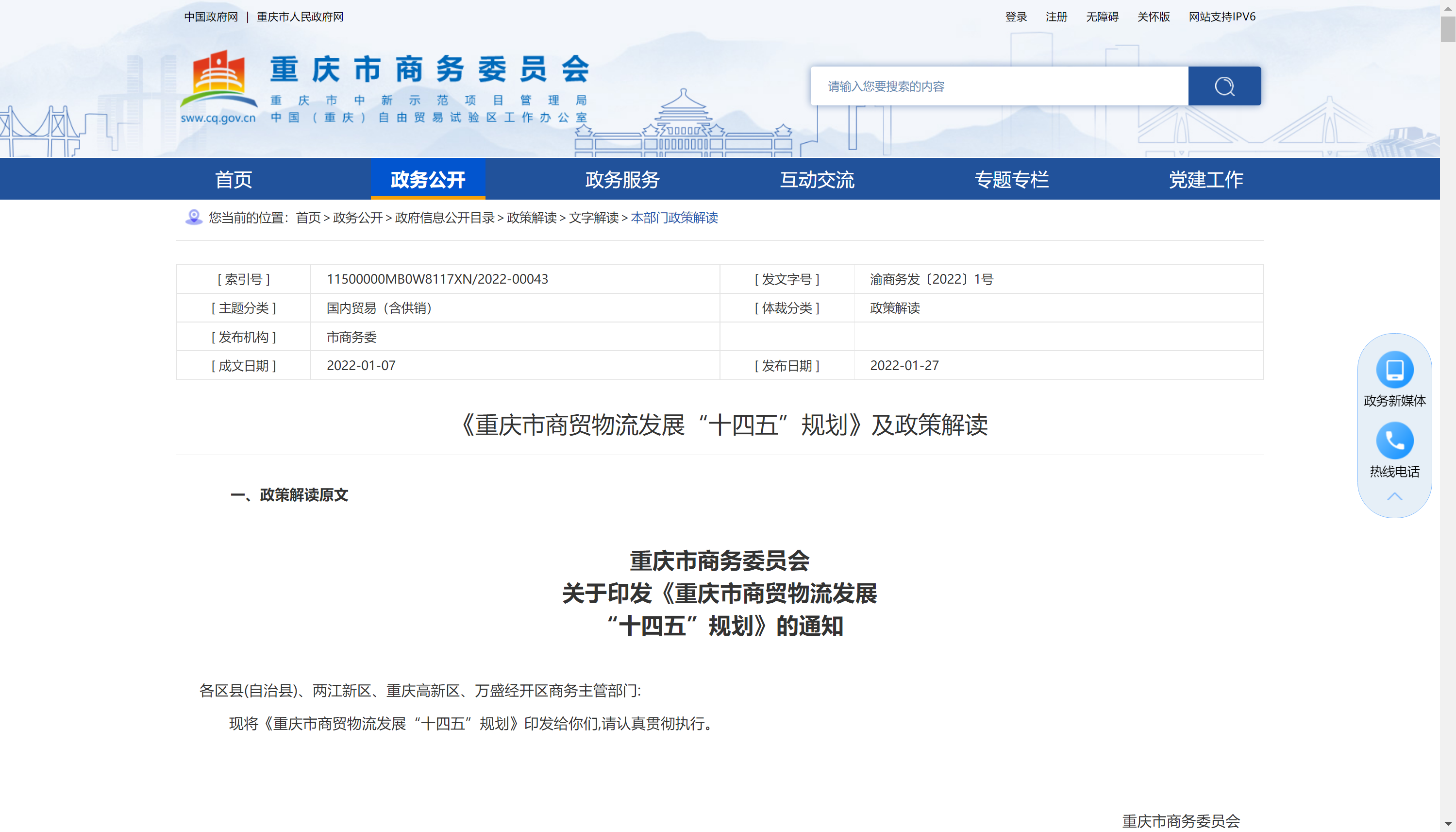 重庆市商务委员会关于印发《重庆市商贸物流发展“十四五”规划》的通知