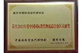 中国国际货代物流最佳地区贡献奖(2011)